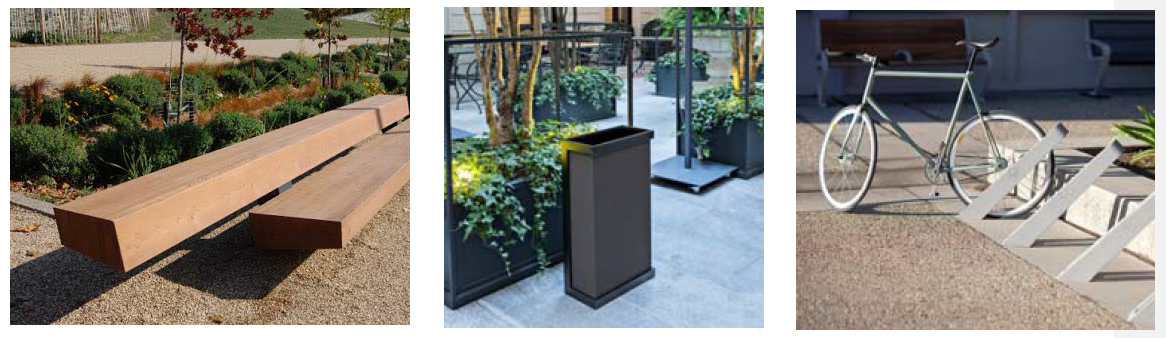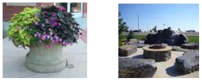 Examples include water features, fire pits, window boxes, hanging baskets, large pots and Planting beds.