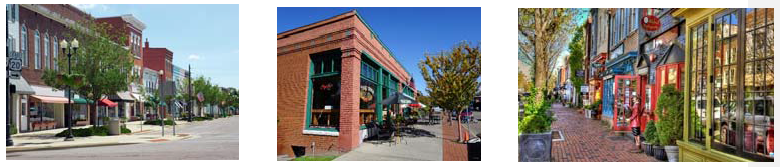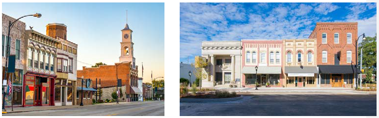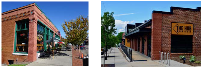 Residential-scale buildings that have the appearance of a historic home that has been renovated for commercial use are encouraged. These types of building are strongly recommended on the south side of the street and at the edges of the urban core to act as a transition to adjacent land uses.