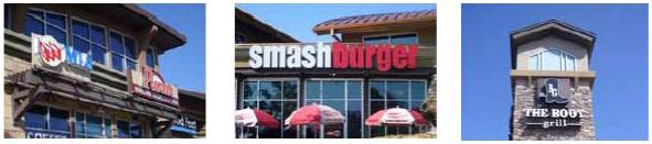 Entries to commercial areas shall be identified by high-quality, ground-mounted signs and/or monumentation. Landscaping shall identify entries with enhanced Plantings as shown (flower beds, ornamental trees, etc.). Signage shall be designed to be appropriate to the scale of the development.