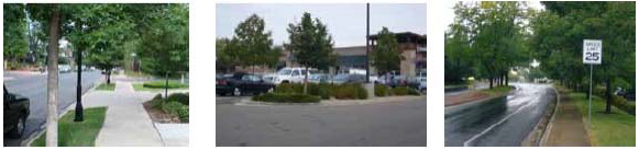 Street trees and dissection of large parking lots with landscaping are encouraged.