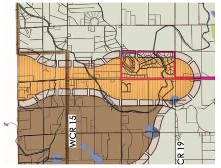 Corner of Colorado Highway 14 and Colorado Highway 257: This intersection has a localized sanitary sewer Plant and is served by North Weld County Water District with potable water.