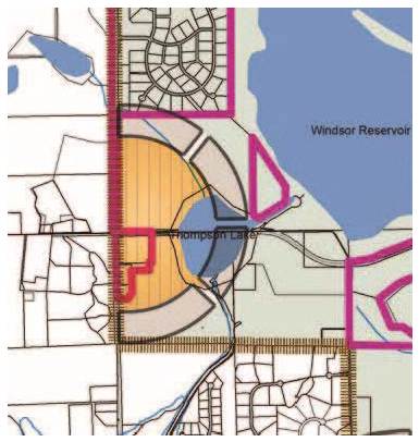 Corner of Colorado Highway 257 and Weld County Road 74 (Harmony Road): This intersection has Planned sanitary sewer provided by the Town of Windsor and is served with potable water from North Weld County Water District. Although sanitary sewer is Planned for this area, it is recognized by the Town that limited commercial and industrial uses may still occur prior to the extension of centralized sanitary sewer facilities.