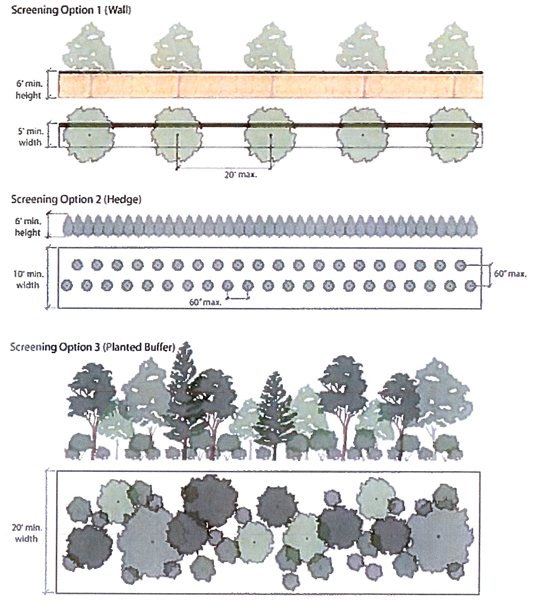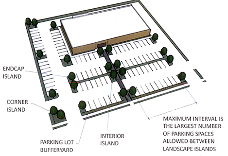 | 100,001 square feet and greater | Additional 1 tree/1,500 square fee |