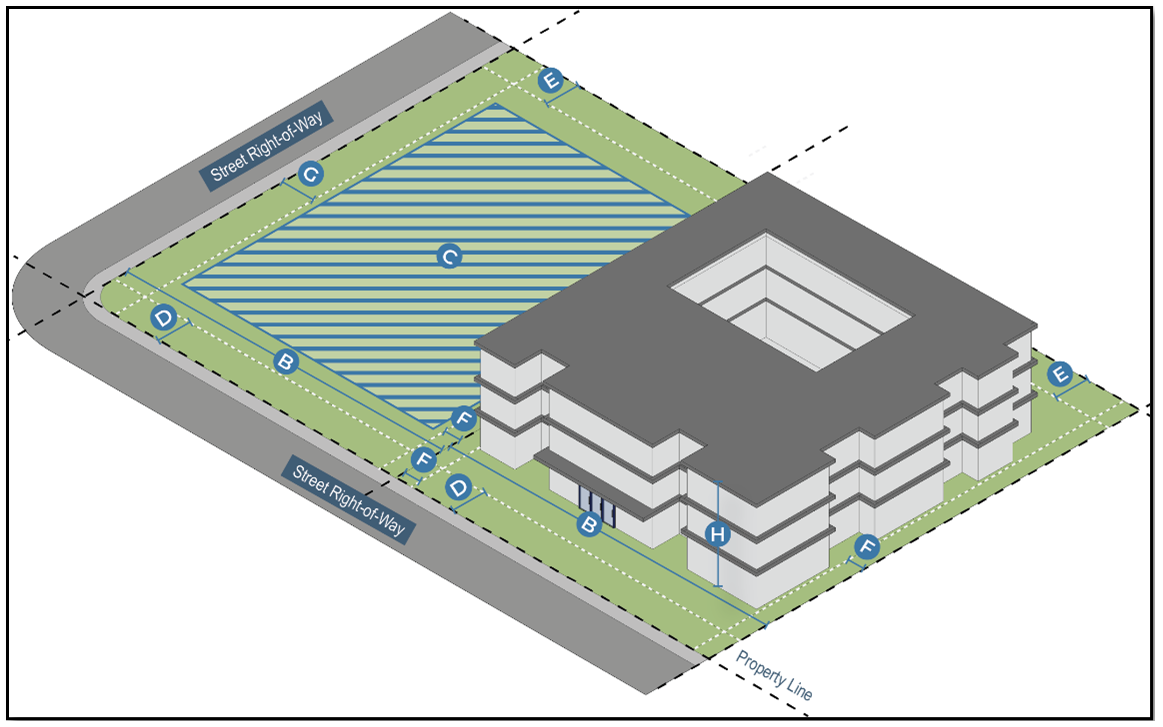 Dimensional Standards. Development in the High-Density Residential (R-3) District shall follow the standards in Table II.5: R-3 District Dimensional Standards.