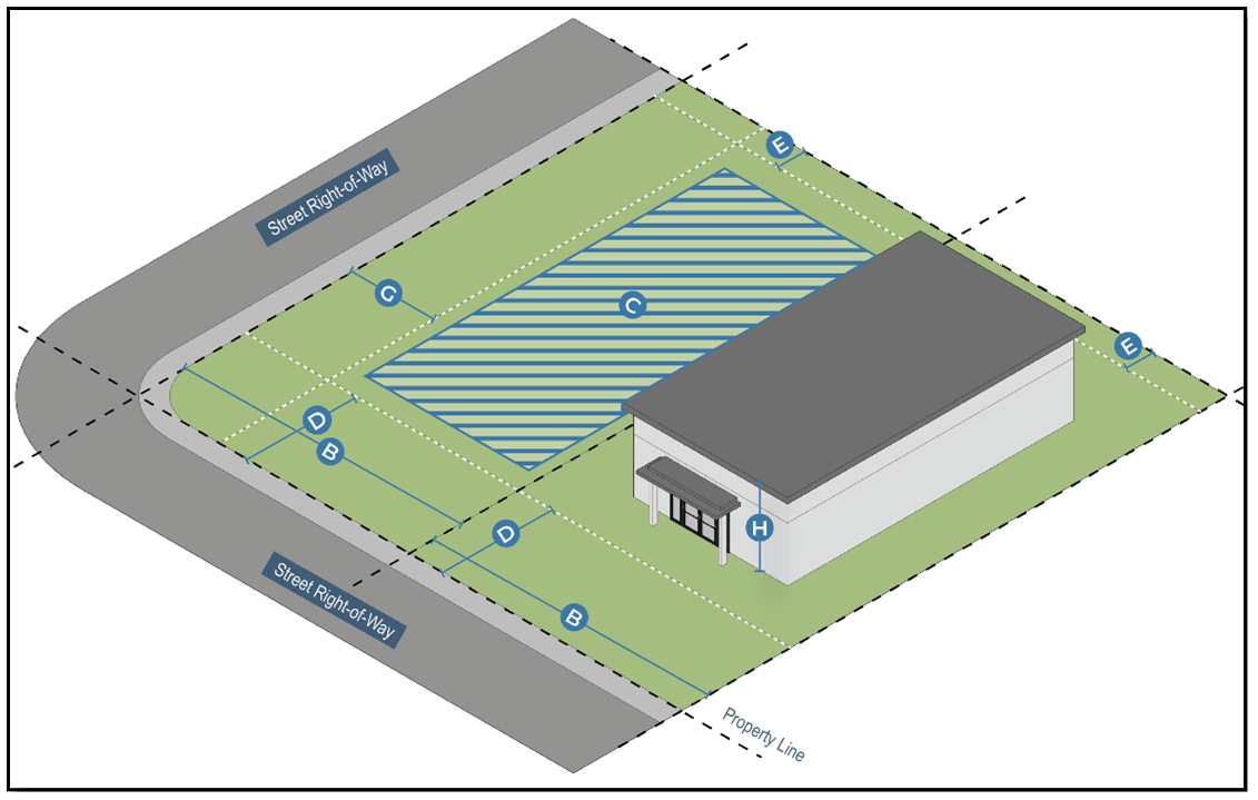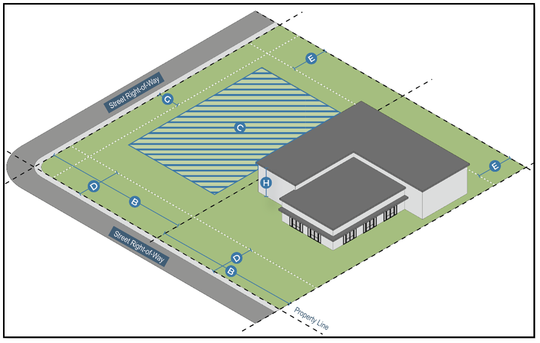 Dimensional standards. Development in the Light Industrial (I-1) District shall follow the standards in Table II.13: I-1 District Dimensional Standards.