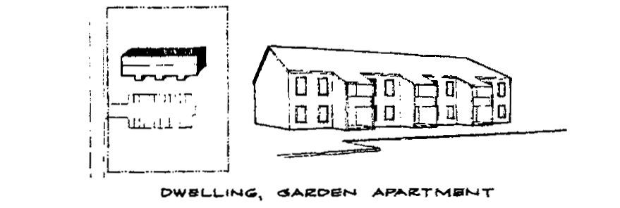 Garden apartment building. See Dwelling.