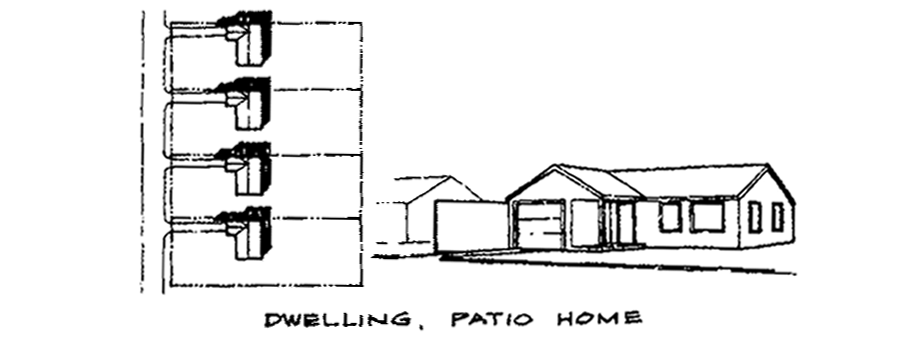 Patio home means a single-family detached or two-family dwelling that may be placed on a lot with an exterior wall adjoining one or more boundary lines of the lot. See Zero-lot line development.