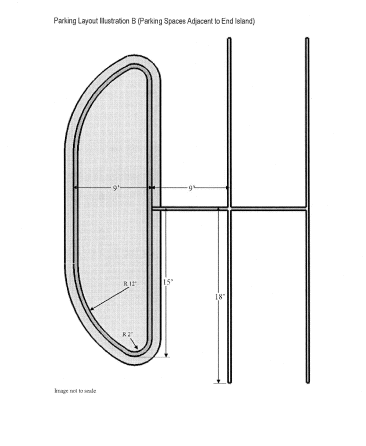 Off-street parking areas shall be designed in accordance with the dimensional standards displayed on Parking Lot illustrations A through E. All required dimensions shall be measured from the face-of-curb (where applicable), with the exception of curb radii which shall be measured from the back-of-curb. The dimensions of the following parking lot elements shall conform to the applicable Parking Lot Illustrations: