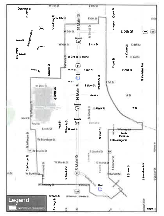 The Downtown Development Overlay District shall be defined as the area outlined in the exhibit below: