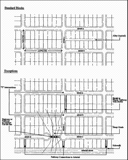 Pedestrian or bicycle ways may be required to connect cul-de-sacs, divide through an unusually long or oddly shaped block, or to otherwise provide adequate circulation.