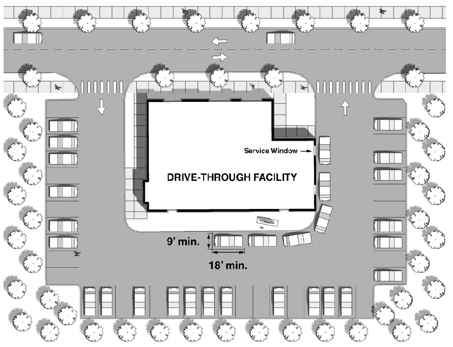 Queuing and vehicle stacking spaces (spaces for cars that are waiting for drive-up or drive-through services) are required for any automated teller machine - standalone use, as provided in Section 8.8 (Queuing and Vehicle Stacking Areas).