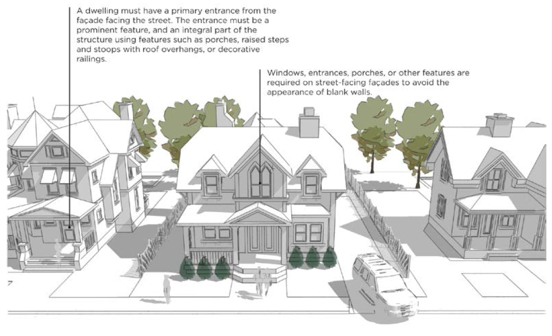 The exterior of a bed and breakfast must maintain its original appearance as a single-family dwelling. Parking for any bed and breakfast shall comply with all applicable parking provisions as described in Article 9 of this Code. All vehicles shall be parked in designated parking areas, and parking is prohibited in any landscaped area.