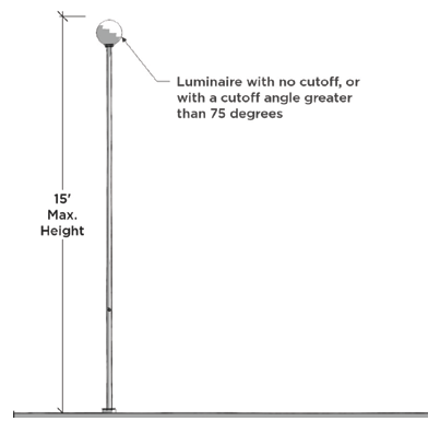 The maximum permitted total height of a luminaire with no cut off is 15 feet. Any luminaire greater than 15 feet in total height requires special use approval.