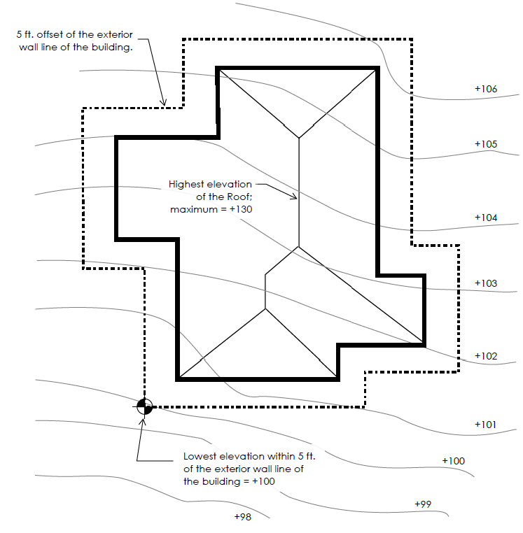Maximum Building Height. No building shall exceed either thirty feet in height or two stories above grade (see illustration below).