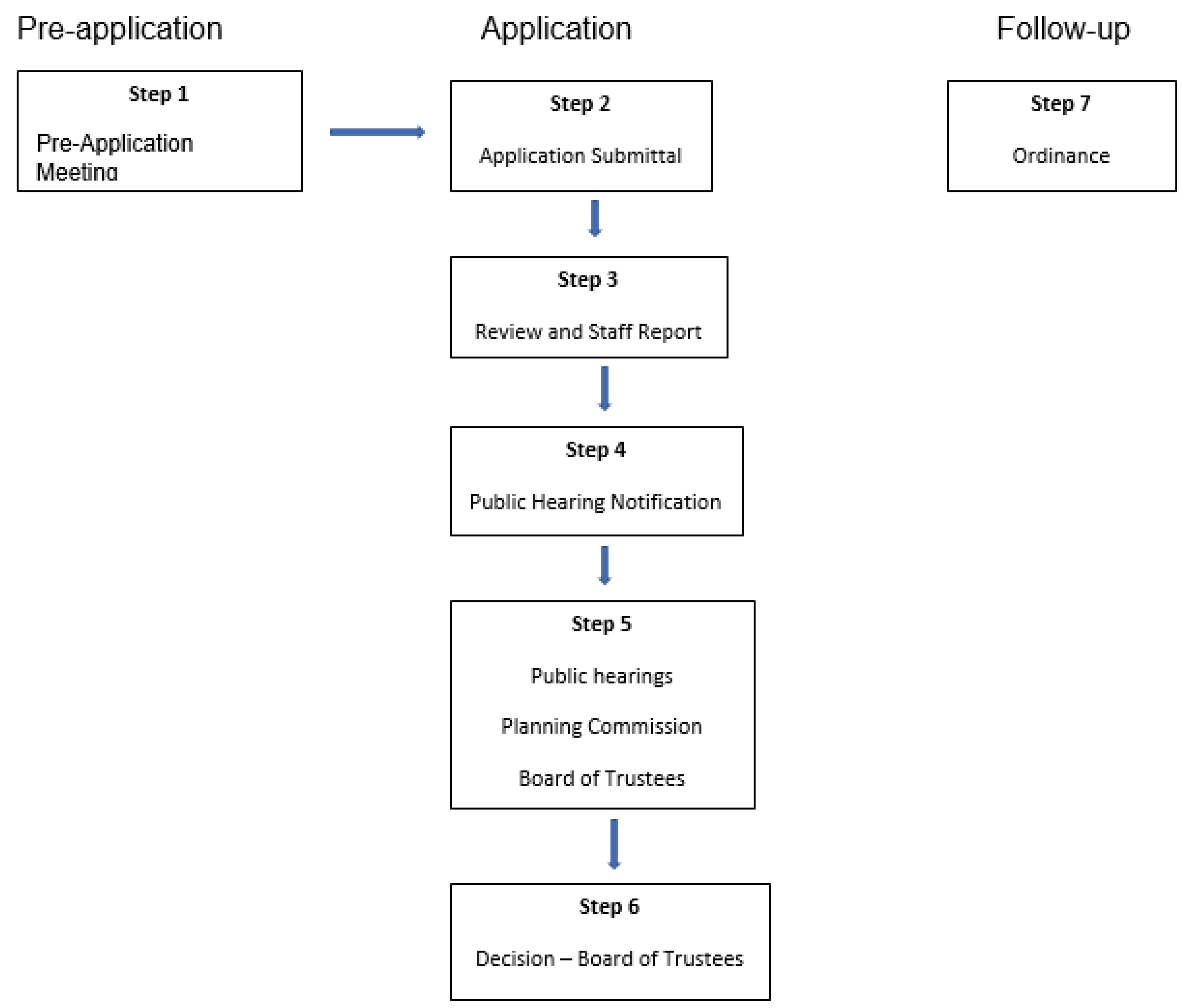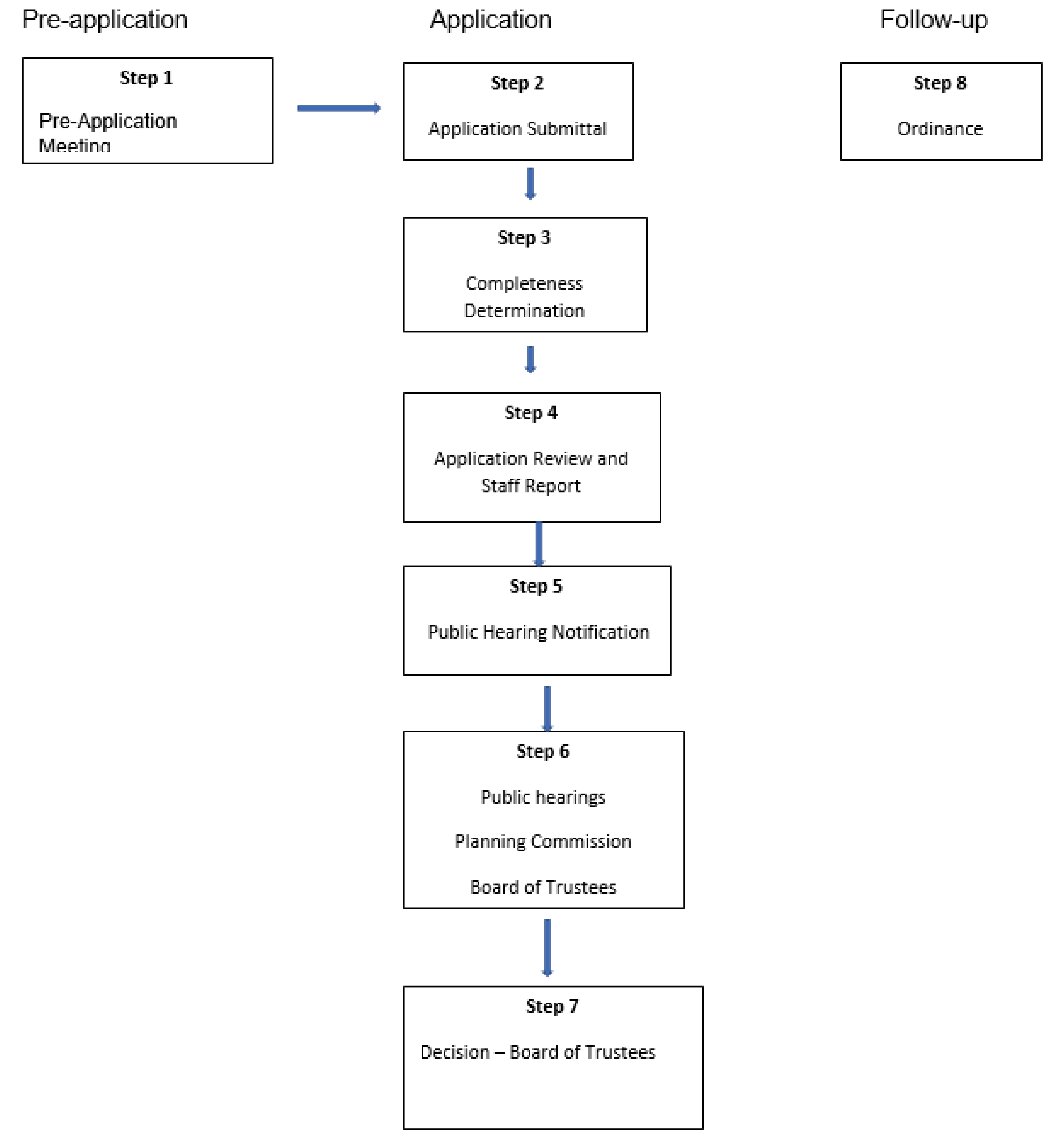 Procedure. The figure below shows the steps involved that apply in the review of an application for an amendment to the zoning map.