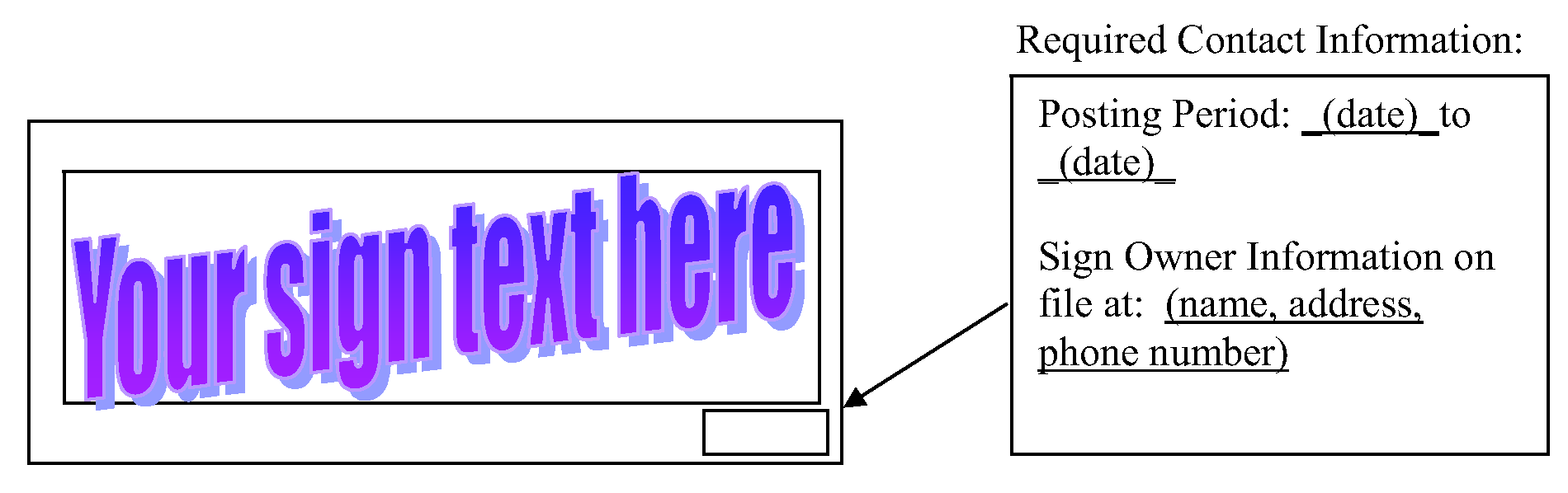 Each charitable commercial temporary sign shall have affixed on the front in the lower right hand corner of the sign, the legible date range or period of its posting (excluding election signs). The name, address, and phone number of the person or organization installing, placing, or erecting or causing the installation, placement, or erection of the sign shall also be legibly affixed on the front of the sign in the lower right corner, unless the name, address, and phone number of the person or organization appear within the graphics of the sign. As an alternative, sign owner's name, address, and telephone number must be affixed to the sign or identified on the sign and it is maintained on file with the organization, the individual, the campaign office, or County of Ventura Elections Division and made accessible, if verification of sign ownership is requested.