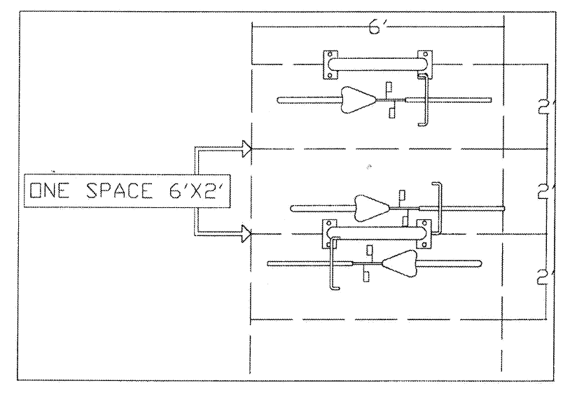 In the spaces provided, there shall be a bicycle rack(s) which will allow a bicycle to be secured in 2 locations on the frame. The style of said rack is subject to approval by the Director of Community Development or designee. The bicycle rack that is utilized must be installed per the manufacturer's specifications and the parking pad for the space shall be constructed of concrete.