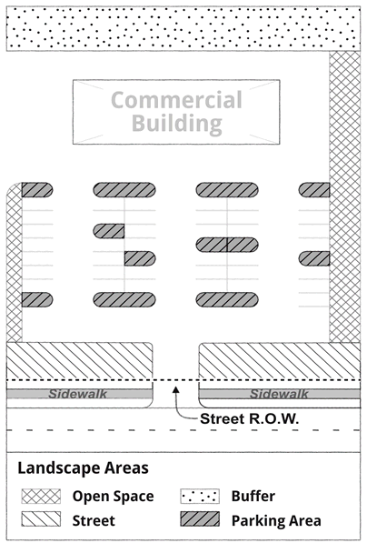 Open space: 25 percent of the commercial lot shall be left in green open space. The space in the rear yard setback will not count toward credit for open space when used for a required buffer.