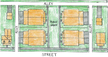 Blocks of parking stalls shall be limited to fifteen (15) consecutive spaces interrupted by a fifteen (15) foot by nine (9) foot landscaped island.
