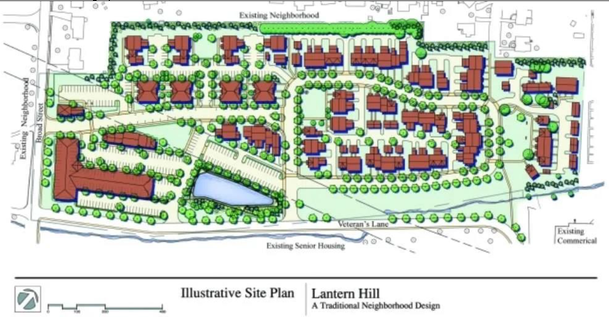 A minimum 20-foot wide landscaped buffer is to be provided along the entire perimeter of the hotel and conference center, provided that a buffer shall not be required along any property line abutting a street situated at the front of the parcel, and a corner parcel shall not be required to have buffering on either property line abutting the street. This buffer is to provide six and one-half-foot high screening adjacent to all residential districts. Screening is to consist of evergreen trees and bushes and berms.