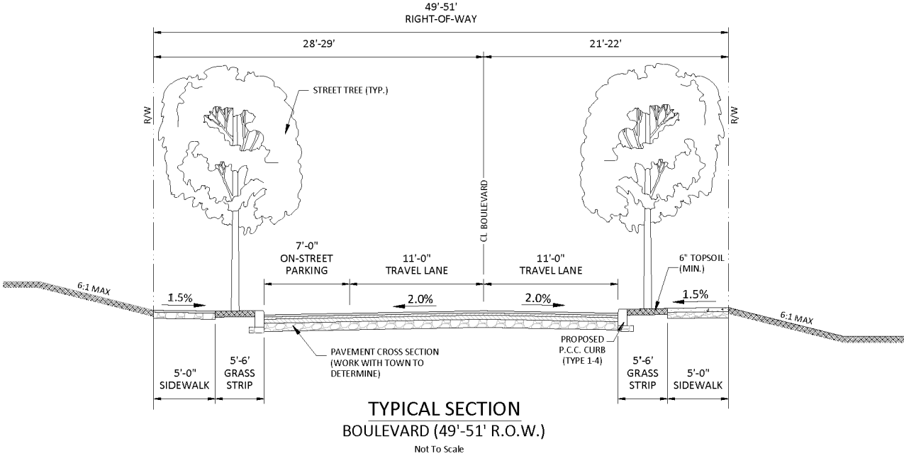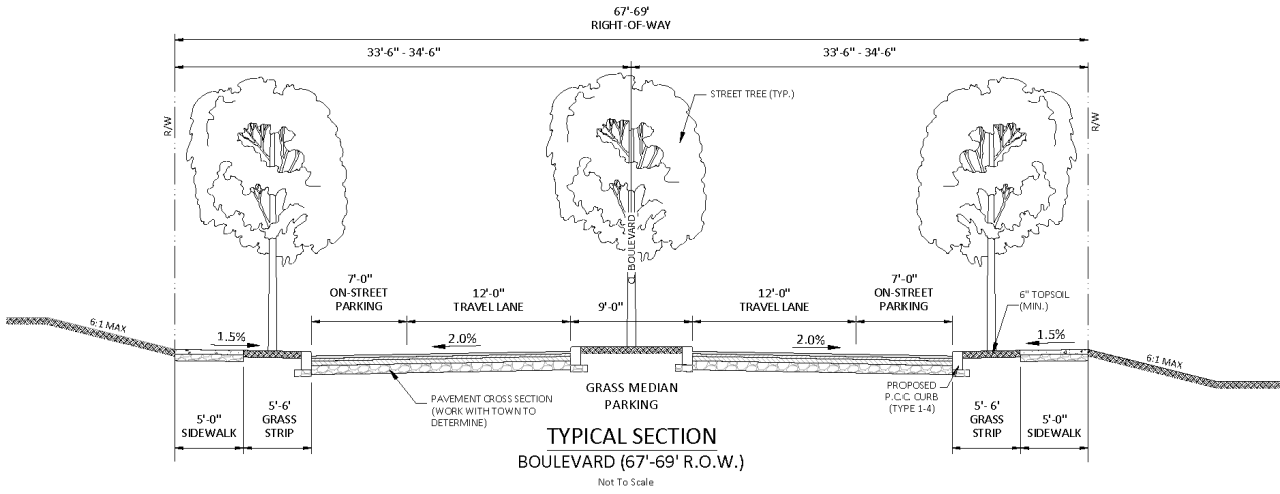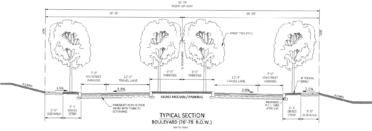 All islands are to be a mix of grass covering, shrubs and at least one (1) street tree per 160 square feet of interior parking lot landscaping required.