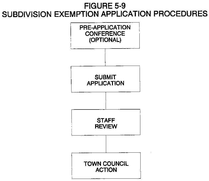 The following procedures shall apply to a subdivision exemption application. These procedures are illustrated in Figure 5-9, Subdivision Exemption Application Procedures.