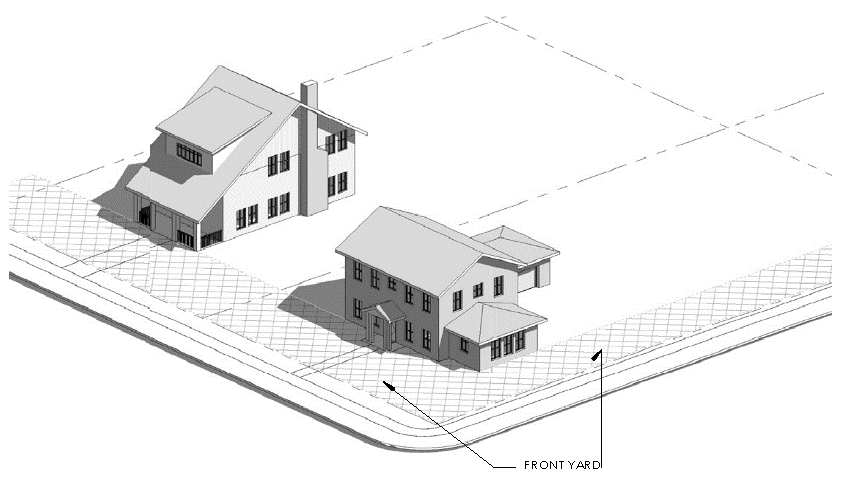 Yard, front. An open space extending the full width of the lot between any building and the front lot line. Corner and double-frontage lots have two front yards.
