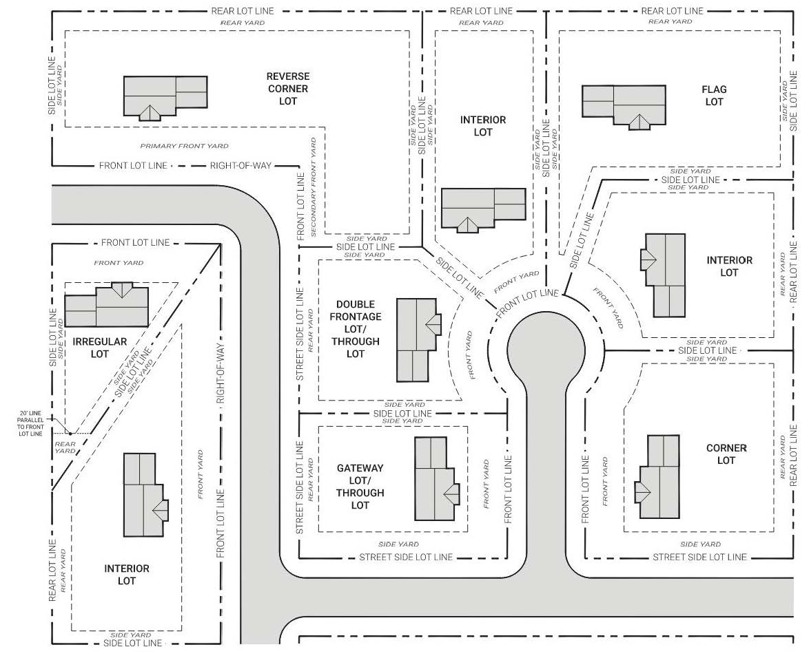 Lot, through. A lot which abuts two parallel public streets, or abuts two public streets which do not intersect at the boundaries of the lot. The yard that abuts a public street and is considered its principal frontage shall be the front yard. The yard that abuts a public street and is not considered its principal frontage shall be the rear yard, with the exception that a front yard(s) has been established along the same public street block and on the same side of the street and has been enforced as a front yard(s). If a front yard(s) has been established along the same public street block and on the same side of the street and has been enforced as a front yard(s), then the yard that abuts a public street and not considered its principal frontage shall also be a front yard.