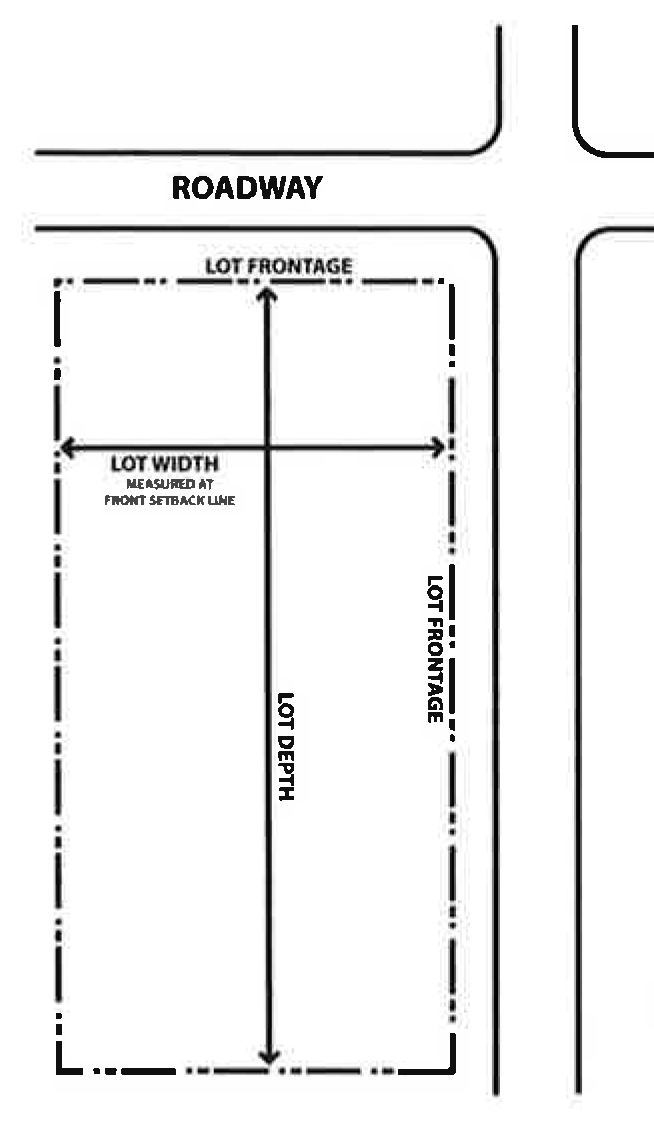 Lot width: The dimension of a lot measured on the building setback line. See figure 5.