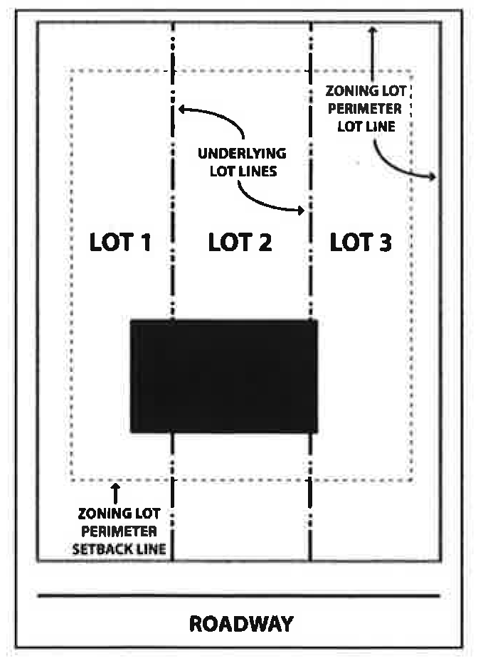 Zoning lot: A tract of land consisting of individual parcels of land located within a block, which is designated by its owner or developer as a tract to be used, developed or built upon as a unit, under single ownership. See figure 8.