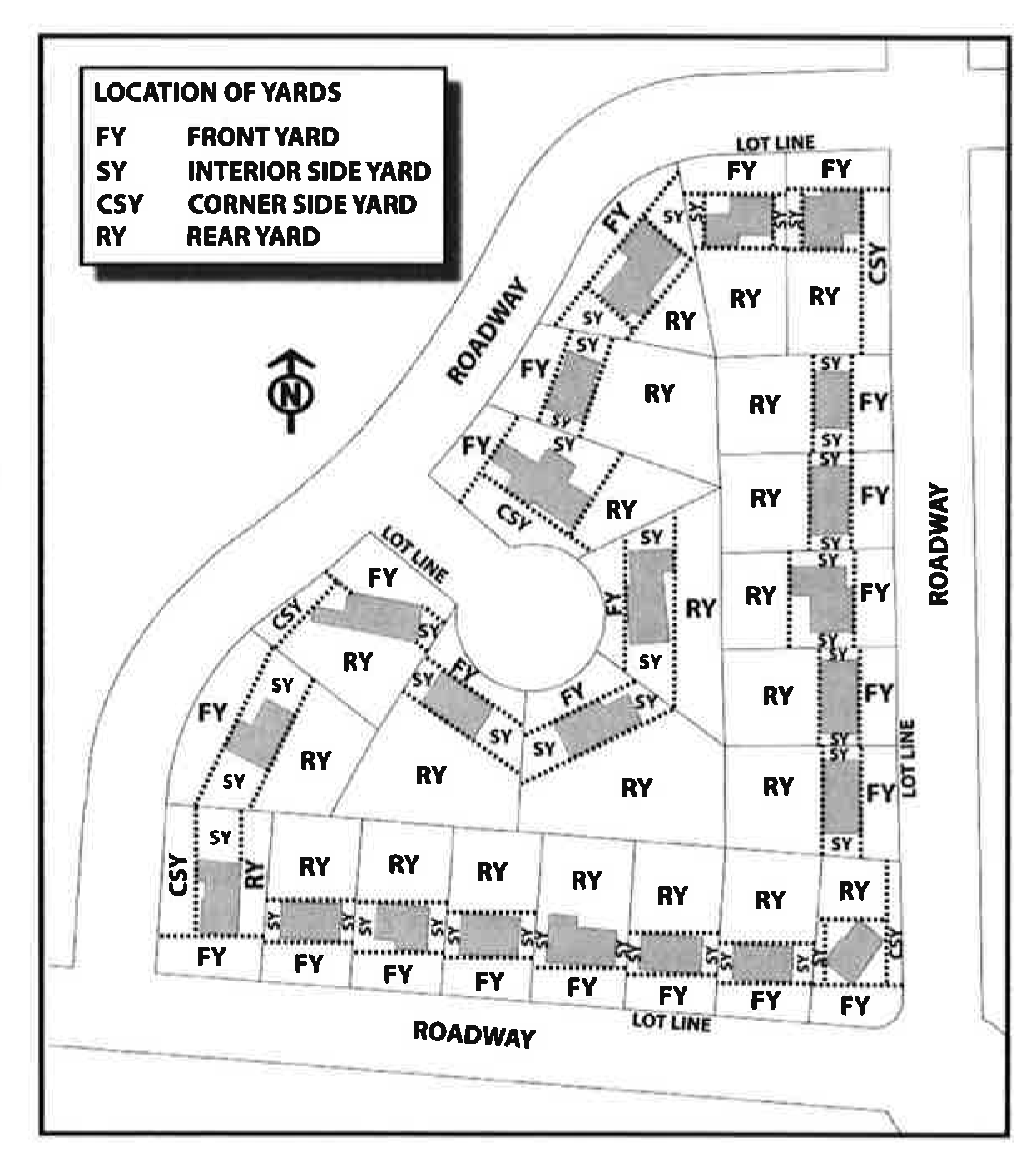 Yard, side: A yard extending from the rear line of the required front yard to the rear lot line.