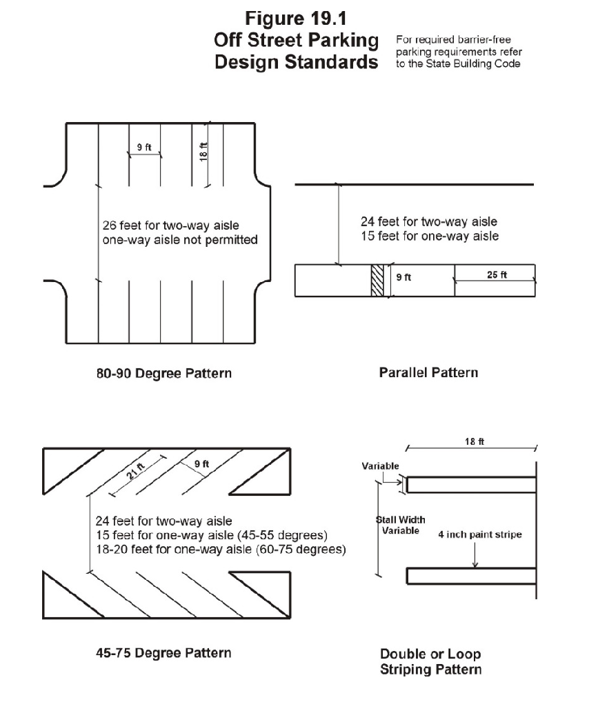 Dimensions. All spaces shall be designed and marked with dimensions described below and shall meet the standards of the City of South Lyon Engineering Standards.