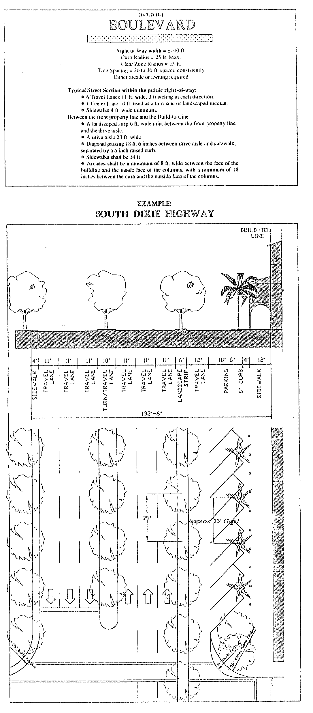 The site plan shall indicate the footprint of the building(s), building entrances, locations of porches, balconies, colonnades and arcades, driveways or parking surfaces, the locations for fences or garden walls, and landscaping (landscaping plan may be a separate drawing). All landscaping shall conform to the landscaping requirements pursuant to Section 20-4.5, City of South Miami Land Development Code. The site plan shall also contain the following information: