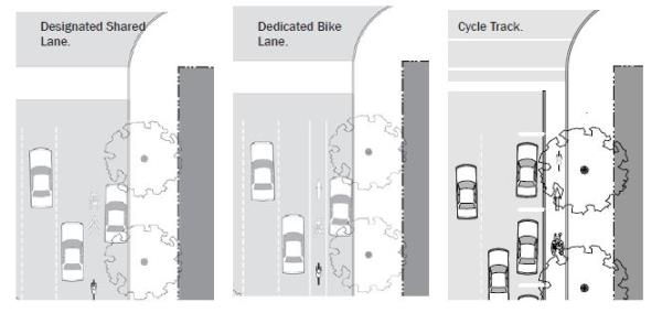| Bicycle facilities2 | Designated shared; cycle track alternative |