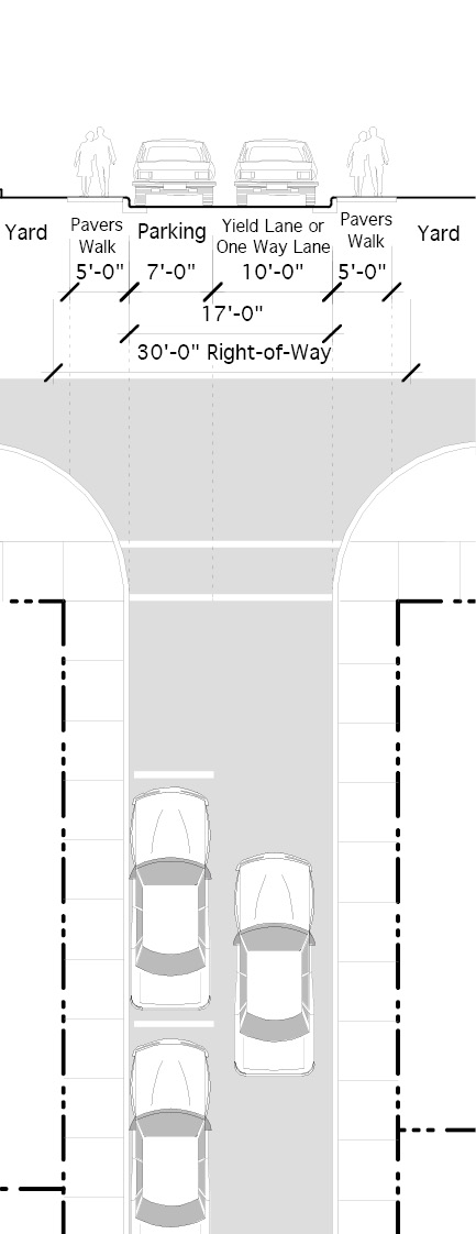 | Pedestrian facilities | Minimum 5' wide clear sidewalk on both sides |