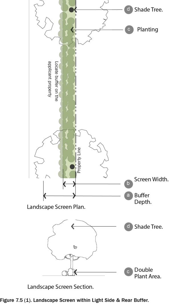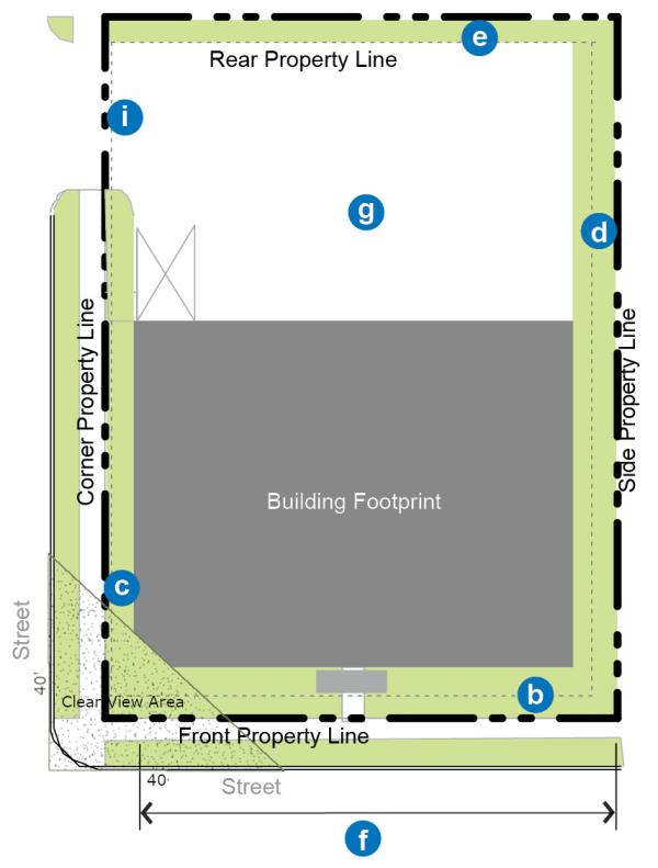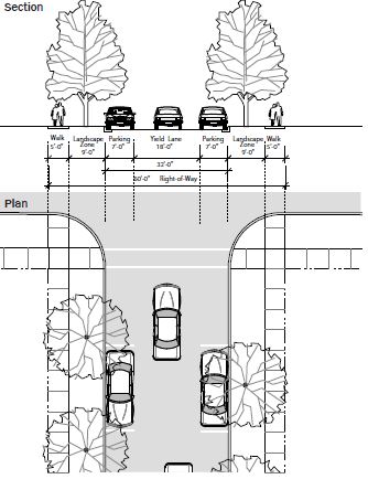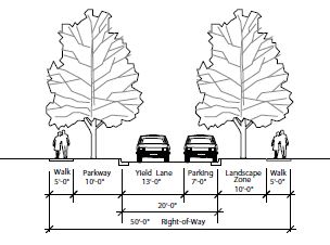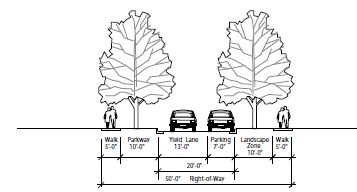 | Street buffer | Minimum 9' wide landscape zone (parkway) |