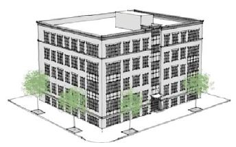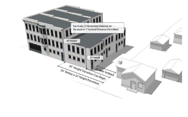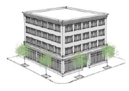 The Gateway General Subdistrict provides the same function as the Gateway Core Subdistrict, but with a lower intensity of building to provide a buffer between residential neighborhoods and commercial areas. Building heights range from 1 - 3.5 stories.