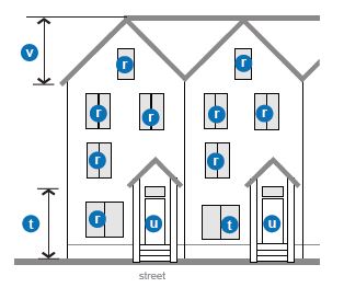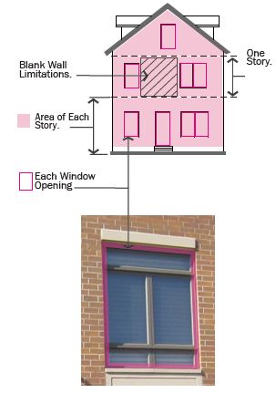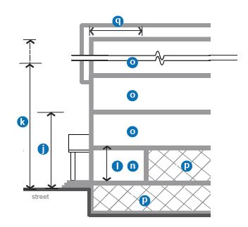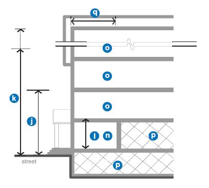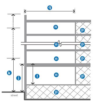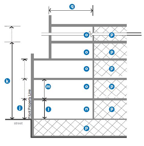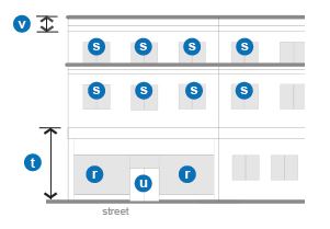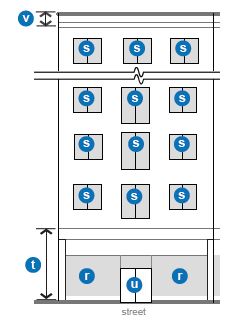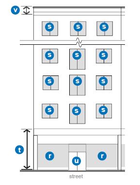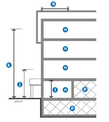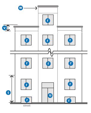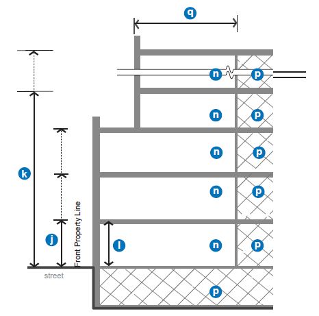 STREETWALL: The vertical plane created by building facades along a street. A continuous streetwall occurs when buildings are located in a row next to the sidewalk without vacant lots or significant setbacks.