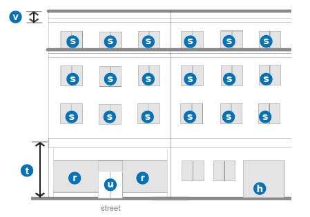 | Permitted subdistricts | All general, core, neighborhood, and edge subdistricts |