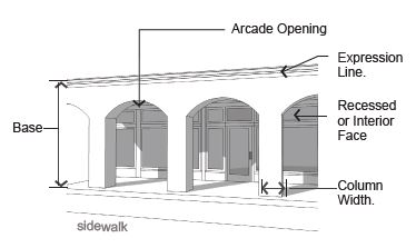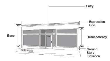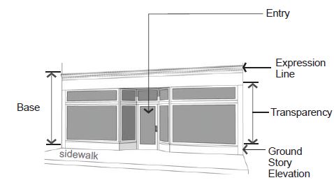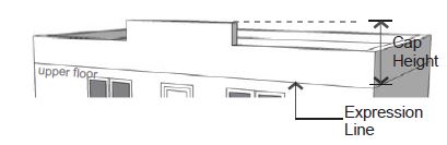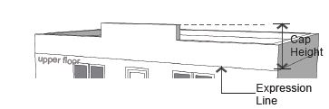 EXPRESSION LINE: An architectural feature. A decorative, three dimensional, linear element, horizontal or vertical, protruding or indented at least two inches (2") from the exterior facade or a building typically utilized to delineate floors or stories of a building.