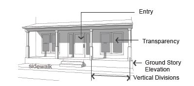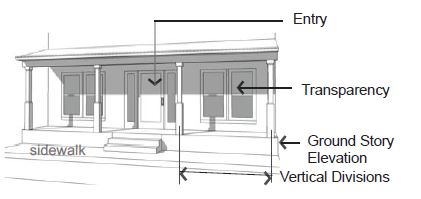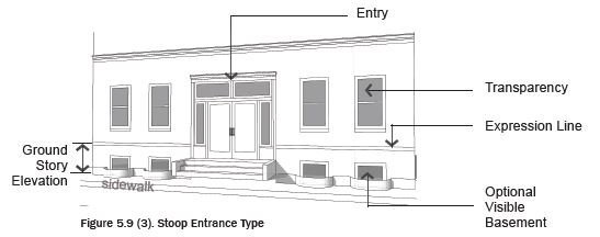ENTRANCE TYPE: The permitted treatment types of the ground floor facade of a building type. Refer to section 10-5.1B-5-9 of this article for more information and a list of permitted entrance types.