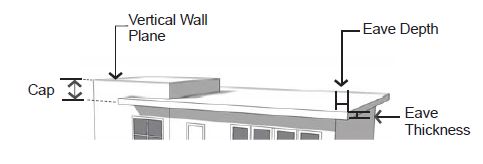 BUILDING, CALCULATING HEIGHT OF: The standard practice when calculating building height is to identify the highest point of the coping of a flat roof, or the deck line of a mansard roof, or to a point midway between the lowest part of the eaves or cornice and ridge of a pitch or hip roof, excluding architectural elements such as chimneys, flag poles, skylights, etc., and draw a line parallel to the grade plane shown on the site plan.