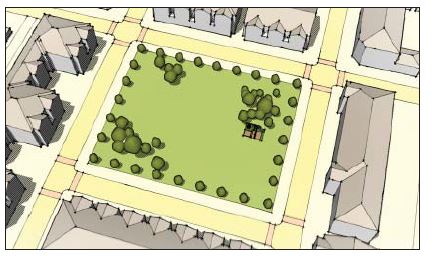 BLOCK ENDS: The lots located on the end of a block; these lots are often larger than the lots in the interior of the block or those at the opposite end of the block and can be located on a more intense street type. They are typically more suitable for more intensive development, such as multiple family or mixed use development.