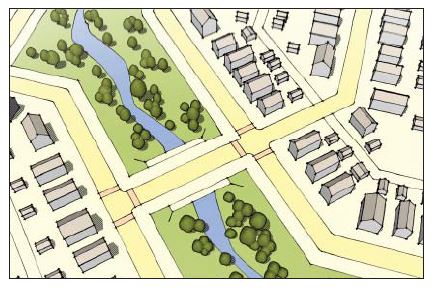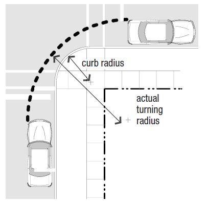 | Pedestrian facilities | Minimum 5' wide clear sidewalk on both sides with bulbouts |