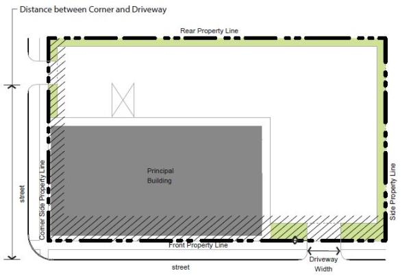 YARD, CORNER SIDE: A yard extending from the corner side building facade along a corner side property line between the front yard and rear property line.