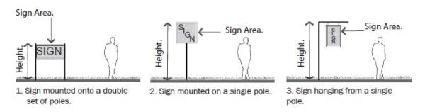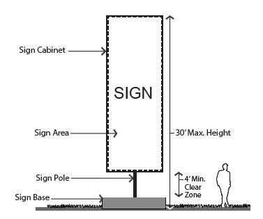 SIGN: An object, device, or structure used to advertise, identify, display, direct, or attract attention to an object, person, institution, organization, business, product, service, event, or location by such means as words, letters, figures, images, designs, symbols, or colors. Flags or emblems of any nation, state, city, or organization; works of art which in no way identify a product; and athletic field score boards are not considered signs.