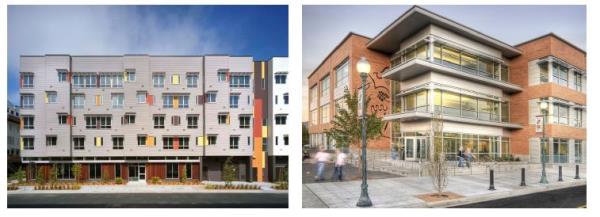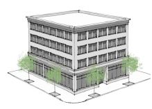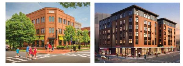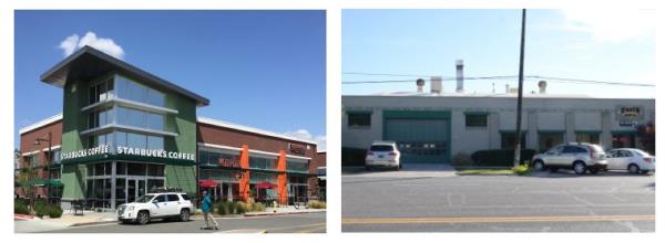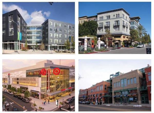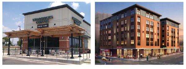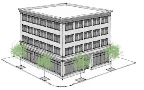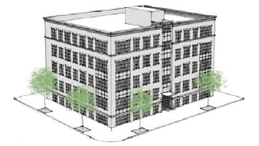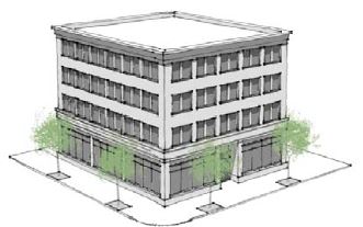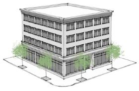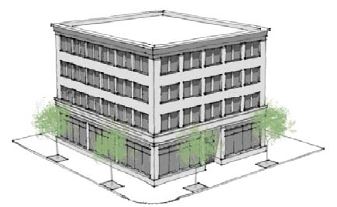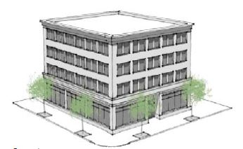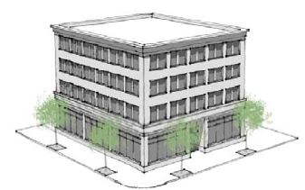 The Neighborhood Subdistrict allows for smaller nodes of commercial uses, the purpose of which is to provide residents with easy access to businesses which provide local services and goods. Building heights range from one - five (5) stories.