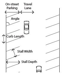 | Angle | Curb Length | Stall Width | Stall Depth |