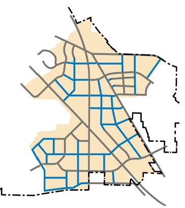 | Bicycle facilities2 | Shared; dedicated bike lane with alternative3 |