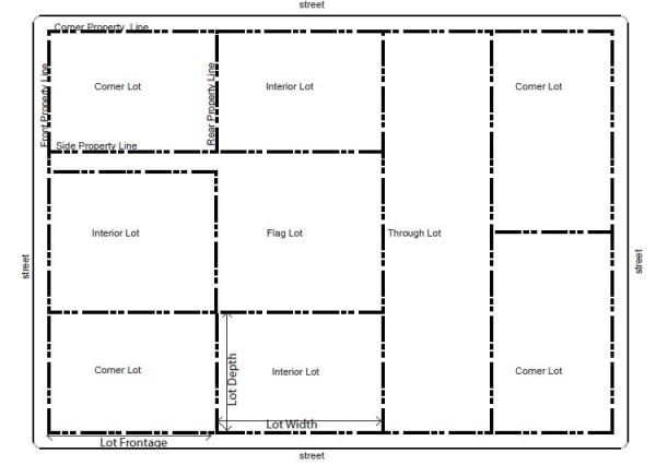 LOT FRONTAGE: The horizontal distance between the side property lines, measured at the front property lines. Refer to figure 10.5(1), "Lots," of this section.